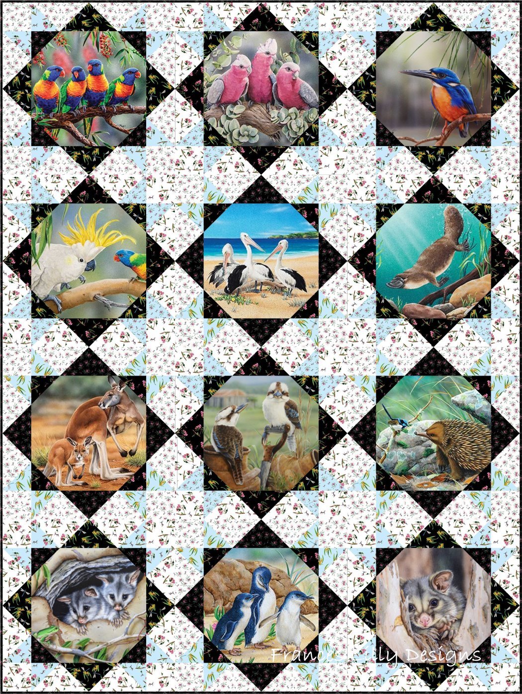 Wildlife Art quilt pattern in two sizes and two colour ways