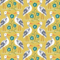 Heron birds on mustard from Dashwood studio. Modern range on 100 percent cotton fabric.